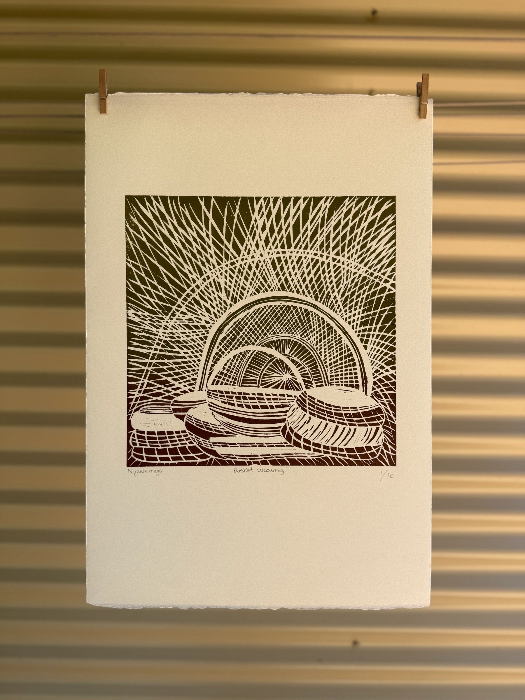 Basket Weaving ~ Lino Print by Natalie Yantarrnga