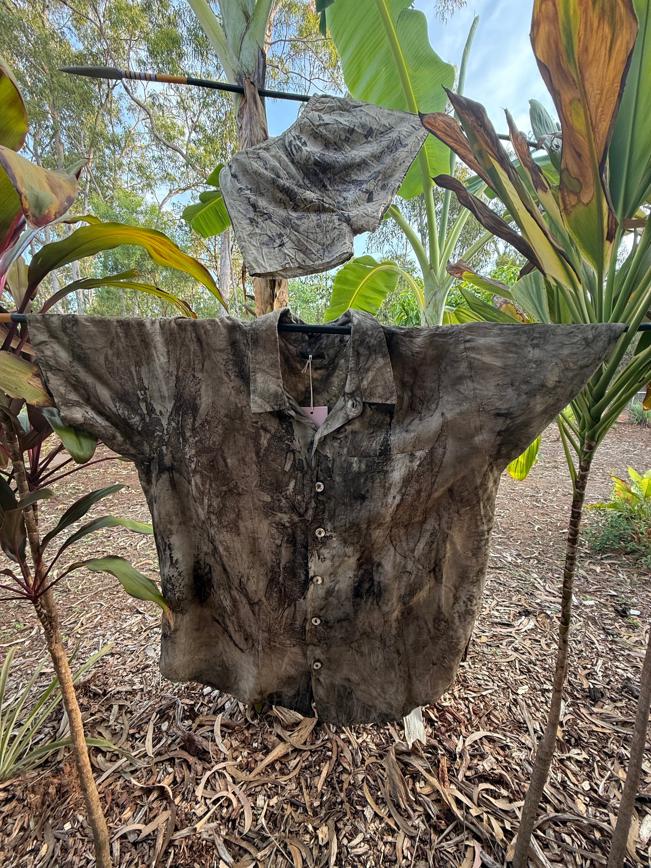 All items are hand dyed in community with sustainably sourced endemic botanicals. Each item is individually hand dyed, meaning each item is unique and special.