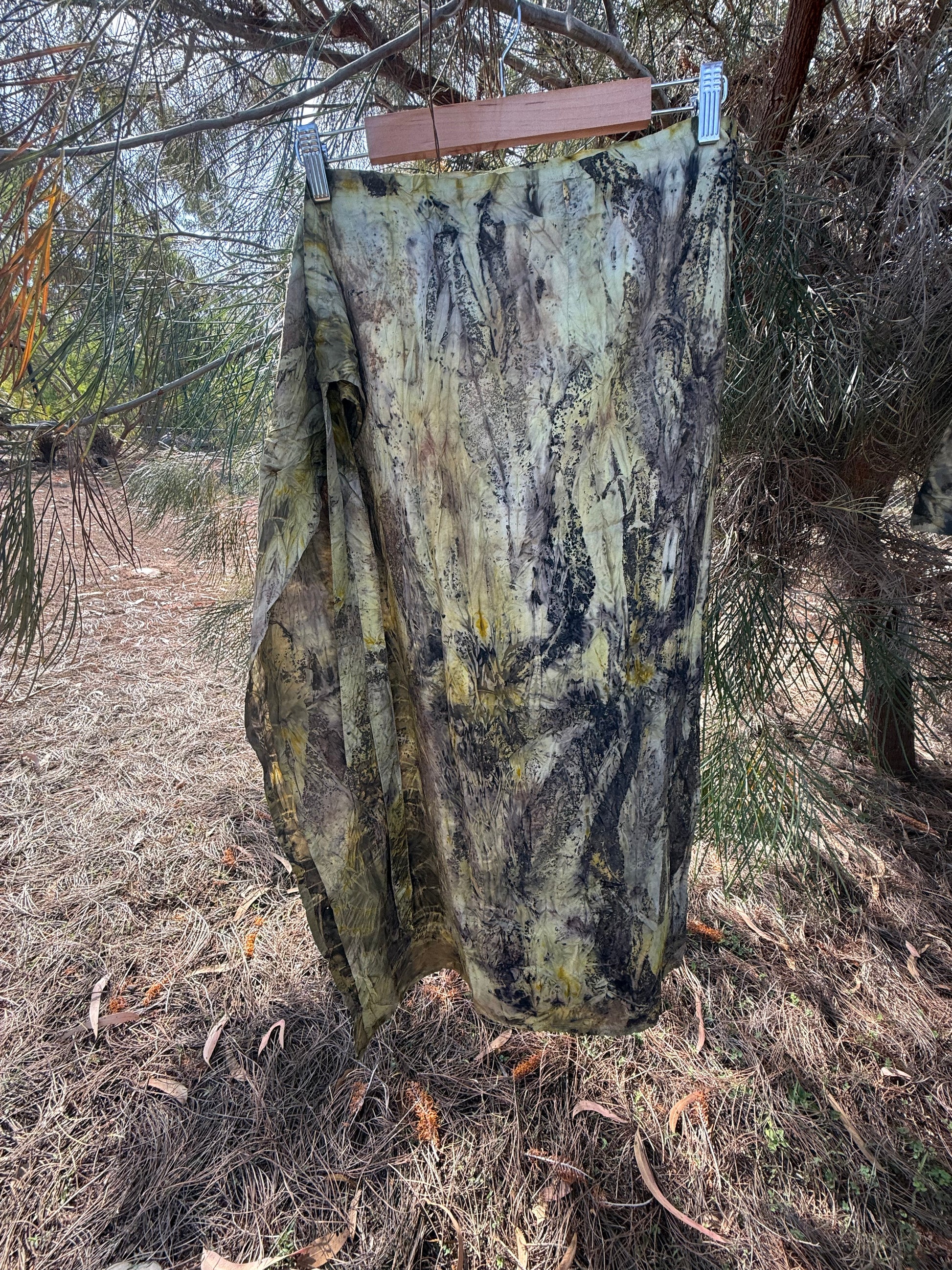 All items are hand dyed in community with sustainably sourced endemic botanicals. Each item is individually hand dyed, meaning each item is unique and special.