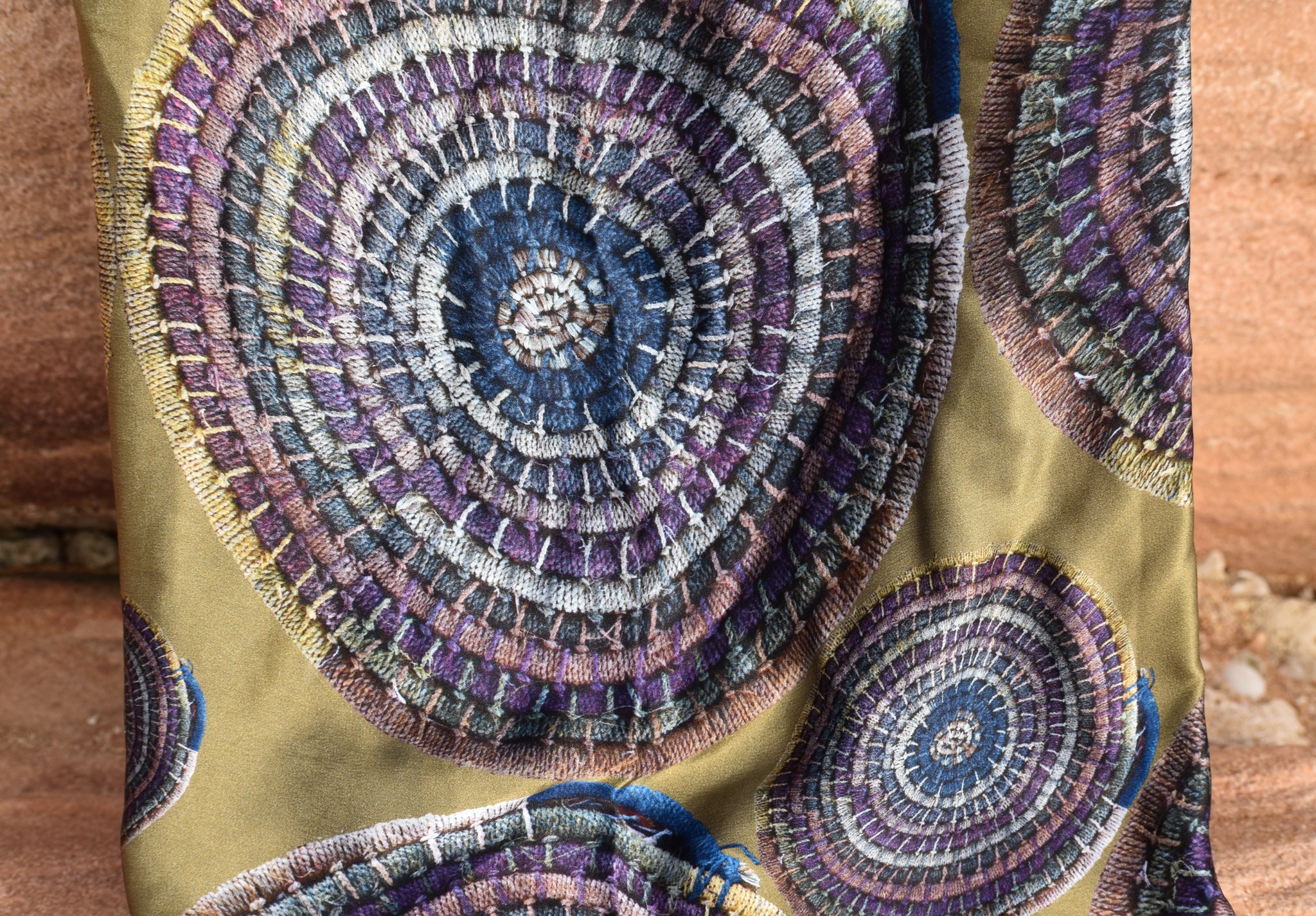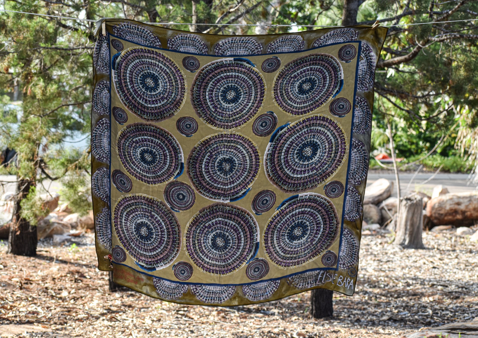 Through working with Darwin-based artist Anna Reynolds, the Warnindilyakwa artists have embraced digital design to create beautiful, one-of-a-kind textiles. They capture elements from their own artworks — inspired by their Country and Culture — and transform them using design software, resulting in original patterns that tell a story.